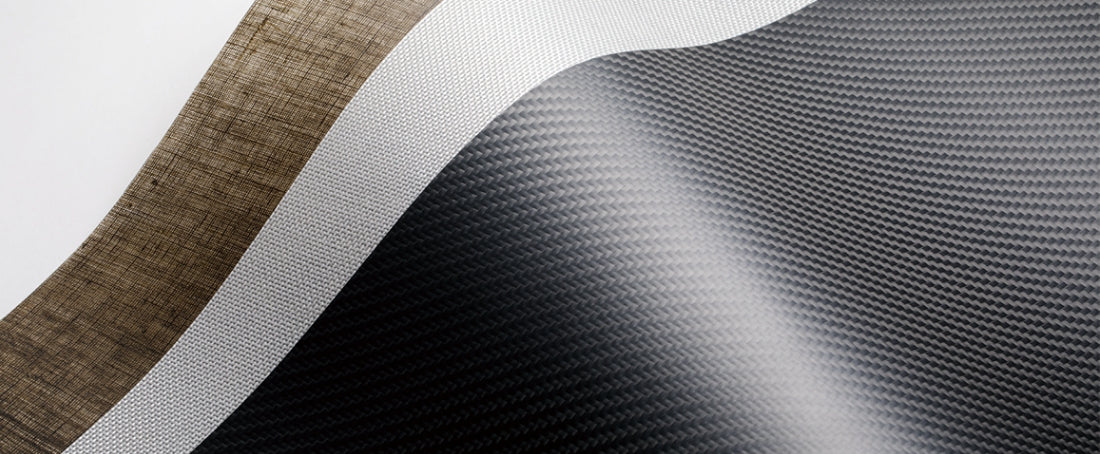 カーボンや麻などのテキスタイルと柔らかい樹脂を複合したリサイクル前提の環境調和型素材です。
